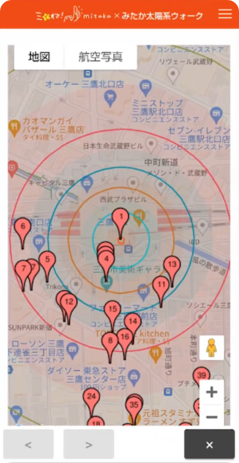 各天体エリア、スタンプの設置場所の地図が表示されます。
