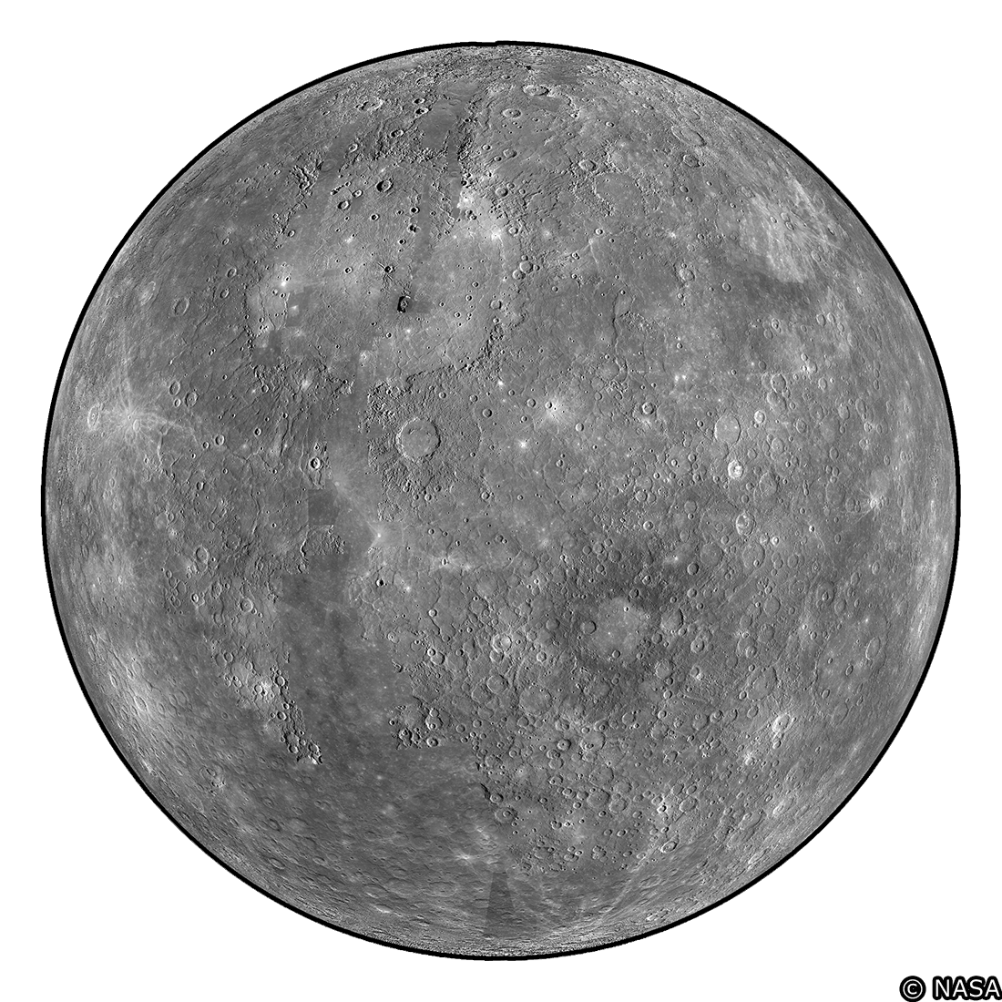 水星にはクレーターがたくさんあります。太陽の引力に引き寄せられた隕石(いんせき)が水星に落ちてきます。大気がほとんどないために、隕石は燃えずに地表に衝突し、風化することなく残ってしまうのです。