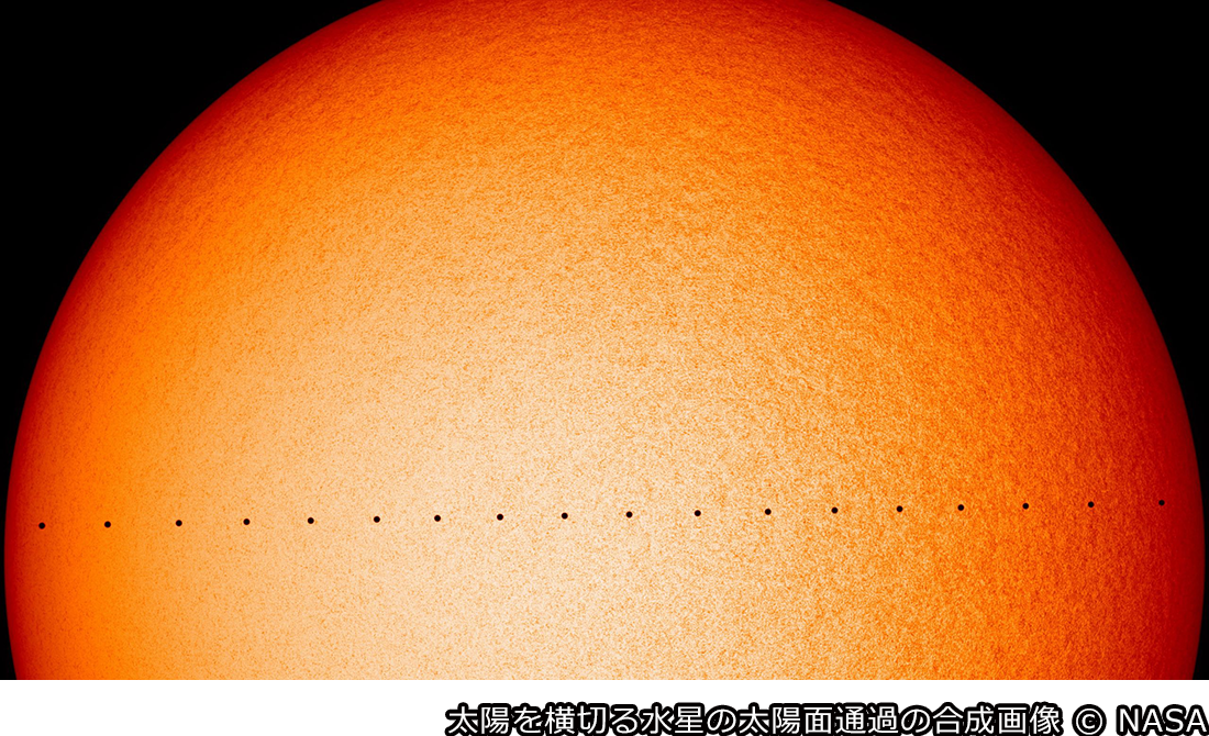 水星は太陽と地球の間にあるので、太陽の前を通過していく様子(太陽面通過)を観測できるときがあります。