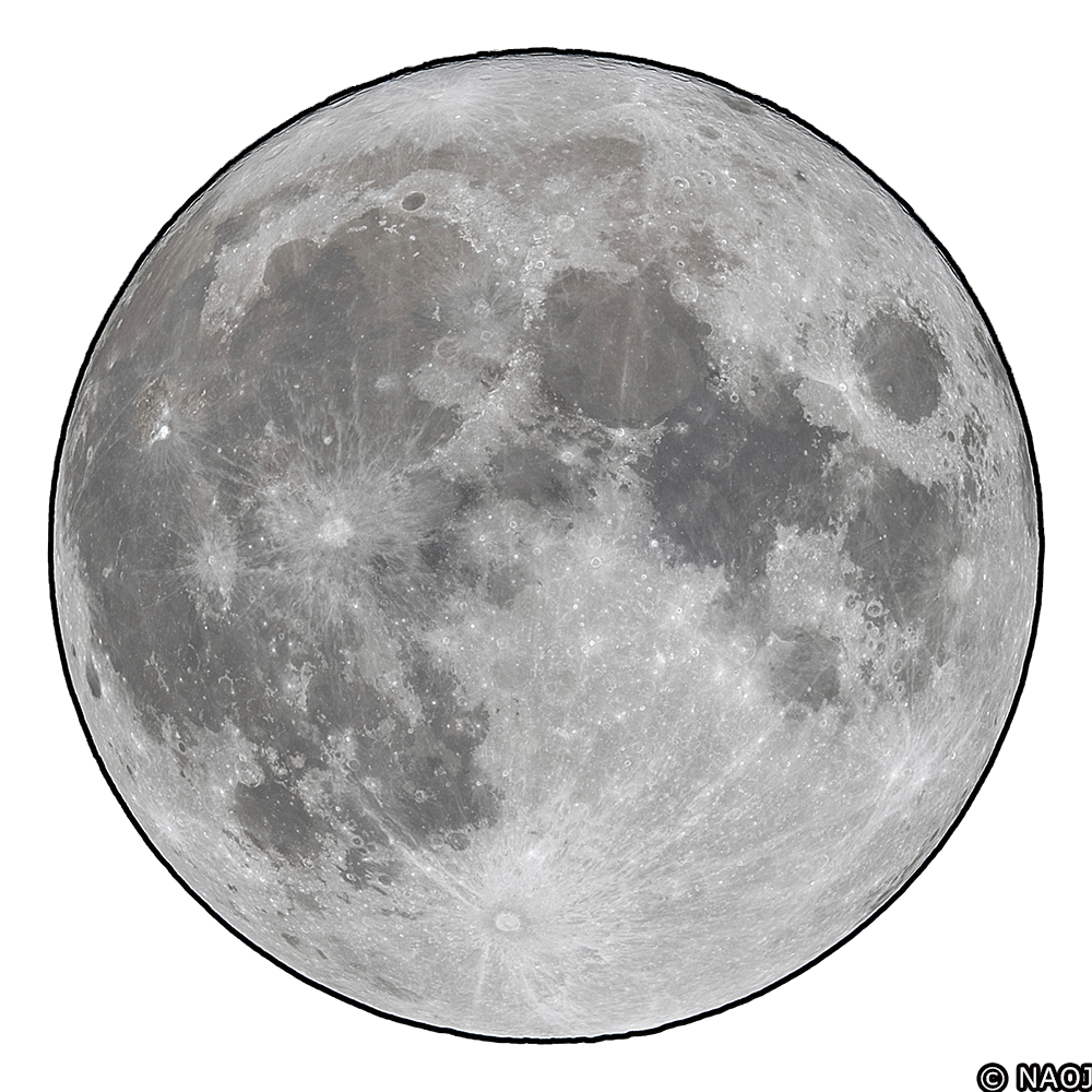 満月の日には、月は太陽の光を正面から浴びています。それを地球にいる私たちが正面から見ている、つまり、月と太陽の間に地球がある。月-地球-太陽の順に並んでいます。