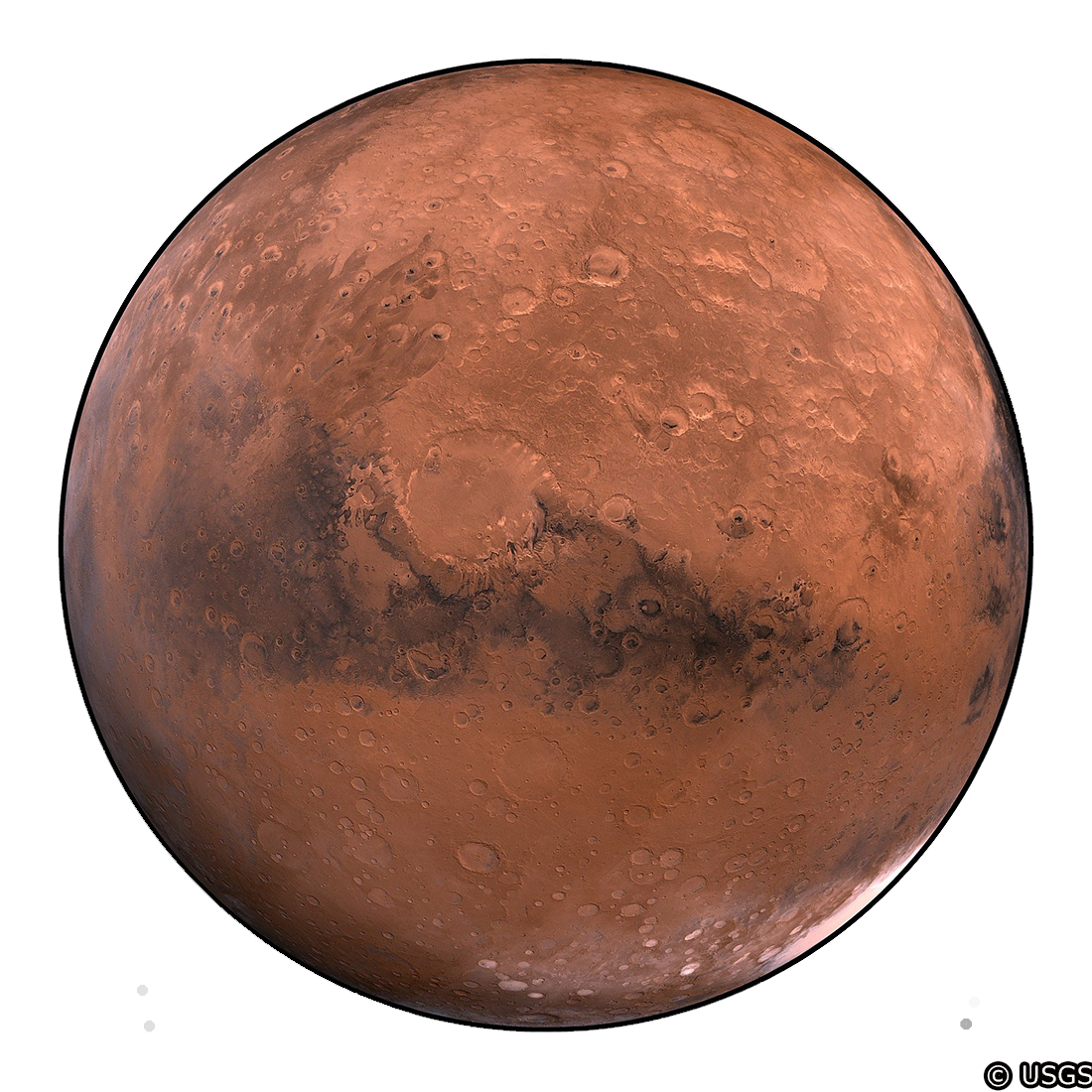 夜空に赤く輝く火星。その表面は酸化鉄(さんかてつ)が大量に含まれた土や岩石におおわれています。酸化鉄とは「赤さび」のことです。赤さび色の表面に太陽の光が反射するために、赤く輝いて見えるのです。