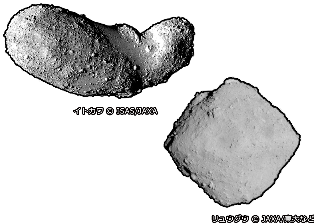 イトカワは、大小二つの塊がくっついたようなピーナッツ型で、最長部約535m、最短部約209mです。「はやぶさ探査機」が観測を行い微粒子を採取し地球へ持ち帰るサンプルリターンに成功しました。